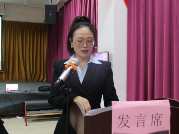 镇妇联主席许蓓婷宣读镇党委批复文件。